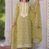 1. Introducing the Kaavish Trends Noreen Lawn Cotton 4Pcs Catalog Suit Set, a perfect blend of elegance and comfort designed for any occasion. This exquisite ensemble features a top crafted from pure lawn cotton, adorned with intricate digital prints complemented by fancy neck lace and daman lace. It makes a standout choice for both casual and formal events. The unstitched nature of the fabric allows for customization, ensuring a perfect fit tailored to your personal style.