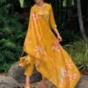 Crafted with utmost precision, the top of this suit is made from pure viscose fabric, adorned with intricate embroidery work. The bottom is made from pure silk, also featuring exquisite workmanship. The dupatta is made from pure taby viscose and boasts a mesmerizing digital print.
