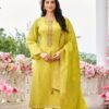 3. Completing this elegant ensemble is a dupatta made from pure Kanjivaram silk jacquard, woven with meticulous attention to detail. The dupatta not only enhances the overall look but also adds an element of tradition, making it a versatile accessory that can be styled in various ways. With bookings now open and free shipping available, this Kesar Karachi Bahaar Kanjivaram Silk Ladies Suit is an exceptional choice for those seeking to elevate their wardrobe with a piece that embodies both heritage and contemporary fashion. Embrace the beauty of this exquisite attire and make a statement at your next event.