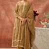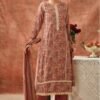 To complete the look, the suit comes with a beautiful dupatta made from pure modal silk discharge print. The combination of these fabrics creates a luxurious and elegant ensemble that is perfect for any occasion.