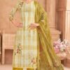 1. Introducing the Kesar Karachi Pratha Pure Lawn Cemric Printed Ladies Suit, a stunning addition to your summer wardrobe that combines elegance with comfort. This exquisite four-piece catalog features a top crafted from pure cemric fabric, showcasing a digitally printed design adorned with intricate elegant knot handwork. The attention to detail in the embroidery elevates the overall aesthetic, making it a perfect choice for both casual outings and festive occasions. The unstitched nature of the suit allows for customization, ensuring a perfect fit tailored to your personal style.