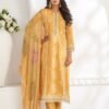 2. Complementing the top is a beautifully dyed cotton bottom that provides both comfort and breathability, essential for the warm summer months. The fabric is soft against the skin, allowing for ease of movement while maintaining a chic appearance. Additionally, the ensemble is completed with a pure Bemberg chiffon dupatta, which features a digital print that harmonizes with the overall design. This lightweight and luxurious dupatta adds a touch of sophistication, making it an ideal accessory for any outfit.