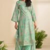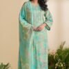 2. Complementing the top is a beautifully pure eric lawn bottom that provides both comfort and breathability, essential for the warm summer months. The fabric is soft against the skin, allowing for ease of movement while maintaining a chic appearance. Additionally, the ensemble is completed with a pure viscose muslin dupatta, which features a digital printed that harmonizes with the overall design. This lightweight and luxurious dupatta adds a touch of sophistication, making it an ideal accessory for any outfit.