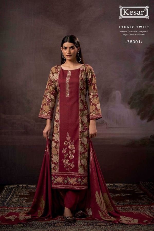 Don’t miss out on this opportunity to own a piece from the Kesar Karachi Sindoor Pashmina Unstitched 3pcs Salwar Suit Catalog. Place your order now and elevate your style with this luxurious ensemble.