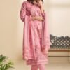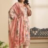3. Completing the ensemble is a pure viscose muslin dupatta, adorned with digital prints that echo the elegance of the top. Muslin is celebrated for its fine texture and lightweight nature, making it a perfect accessory to drape gracefully over your shoulders. The dupatta not only enhances the overall aesthetic of the suit but also adds an element of tradition to your modern attire. With free shipping available and bookings open, this Kesar Karachi Taniya Jam Satin Ladies Suit is an exceptional value, It allows you to elevate your fashion game without breaking the bank. Order now via WhatsApp to secure this beautiful piece for your collection.