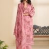 1. Introducing the Kesar Karachi Taniya Jam Satin Ladies Suit, a stunning addition to your wardrobe that combines elegance and comfort in one exquisite package. This unstitched four-piece catalog from the renowned brand Kesar Karachi is part of the Roselyn collection, designed to cater to the modern woman’s fashion needs. The top is crafted from pure jam satin, featuring a digitally printed design that showcases intricate patterns and vibrant colors, complemented by elegant handwork that adds a touch of sophistication. This suit is perfect for various occasions, whether it be a festive celebration or a casual gathering, ensuring you stand out with grace.