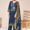 To complete the look, the suit comes with a beautiful dupatta made from pure viscose muslin featuring captivating digital prints. The combination of these fabrics creates a luxurious and elegant ensemble that is perfect for any occasion.