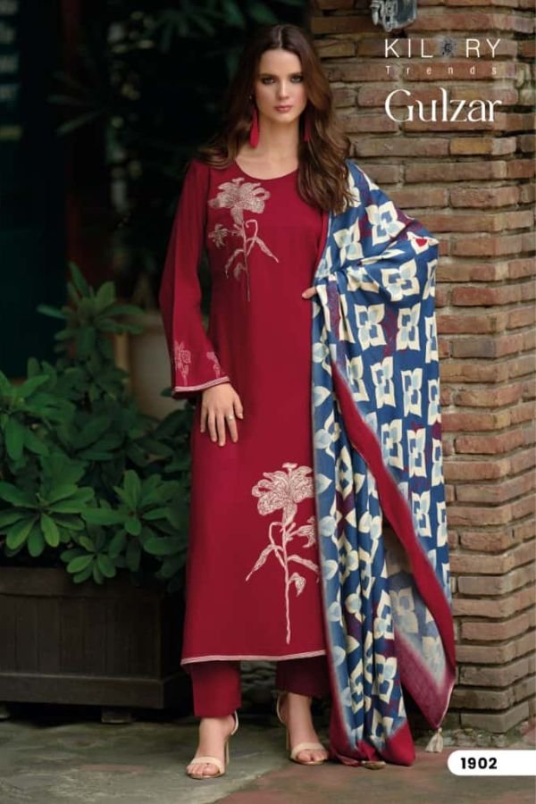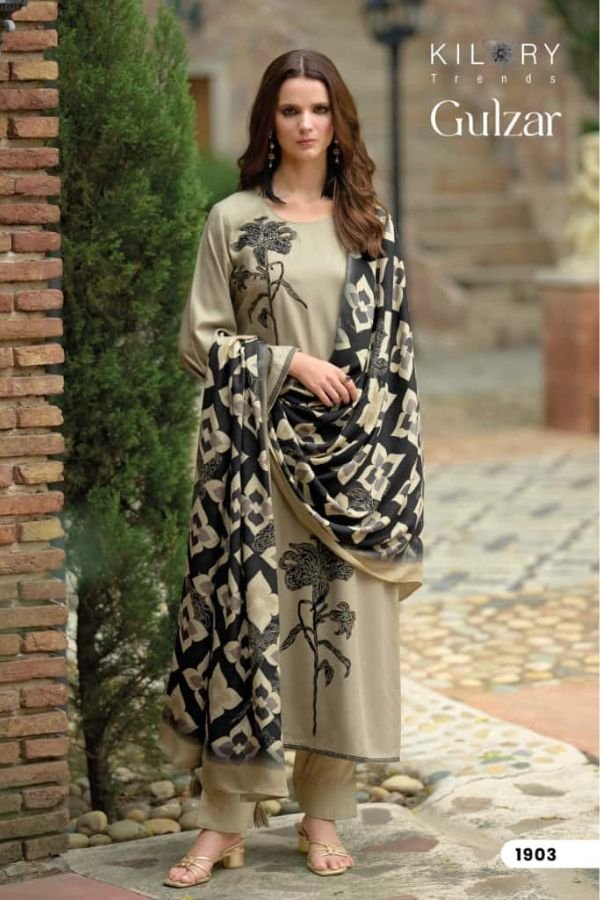 Introducing the Kilory Trends Gulzar Pashmina 4pcs Winter Suit Catalog, a premium quality pure viscose pashmina suit that is perfect for all occasions.