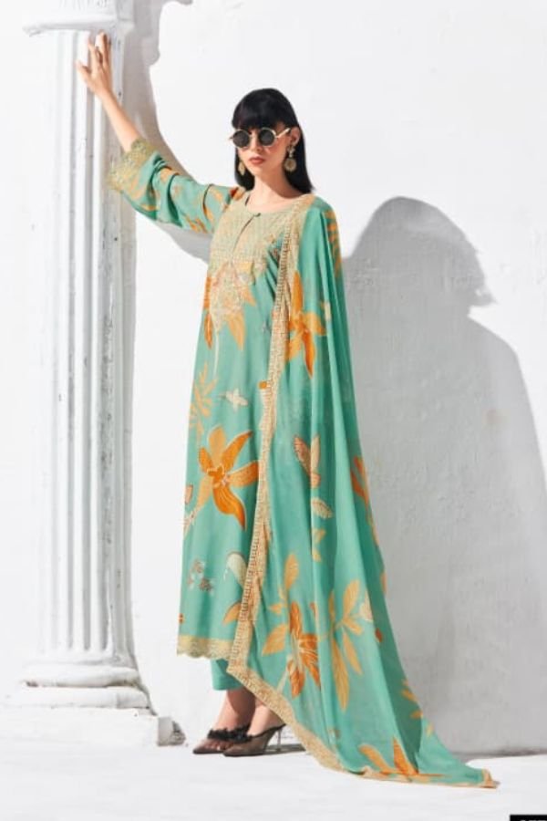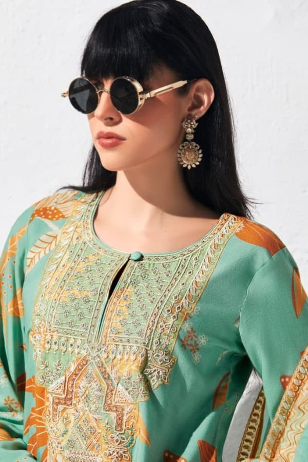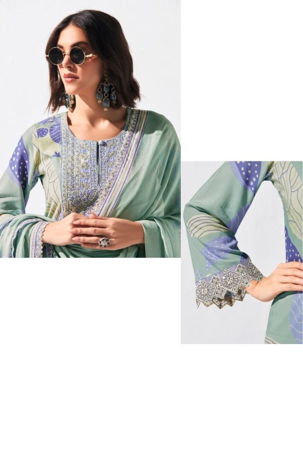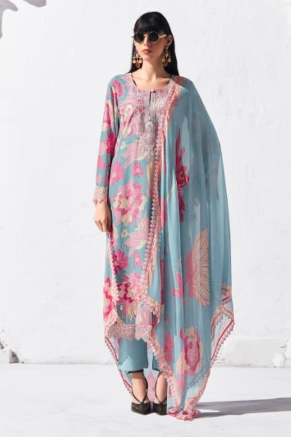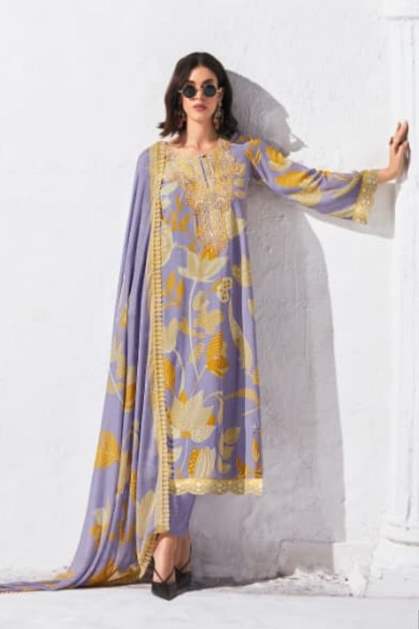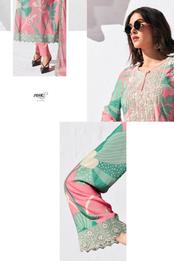 3. Completing each ensemble is a stunning dupatta crafted from pure chinnon fabric, featuring a vibrant digital print and dori embroidery scalloped border. This dupatta not only adds an extra layer of elegance but also enhances the overall appeal of the outfit. With bookings now open and free shipping available, this collection is an excellent opportunity for fashion enthusiasts to elevate their wardrobe with timeless pieces. Order through WhatsApp to secure your selection from the Kimora Fashion Heer Attitude catalog and embrace the beauty of traditional craftsmanship.