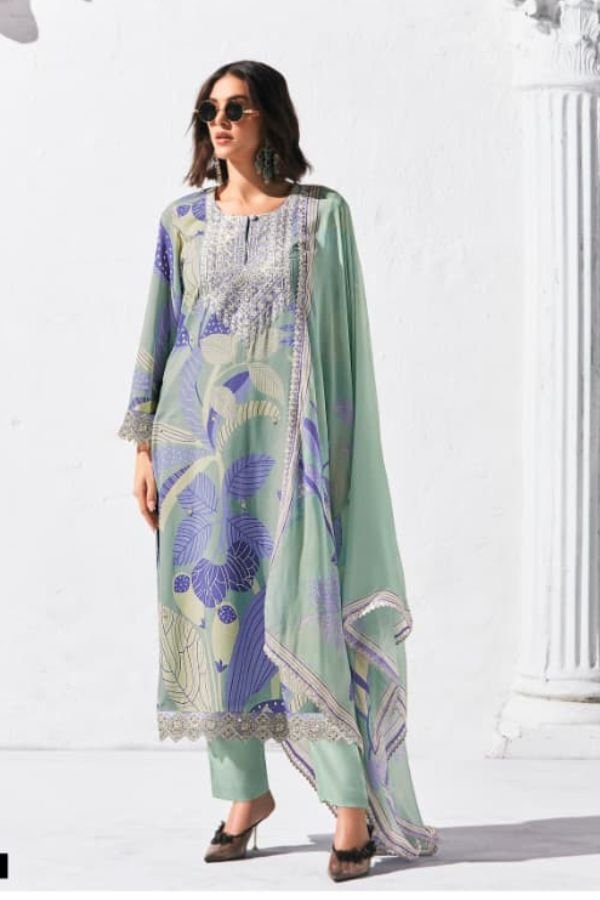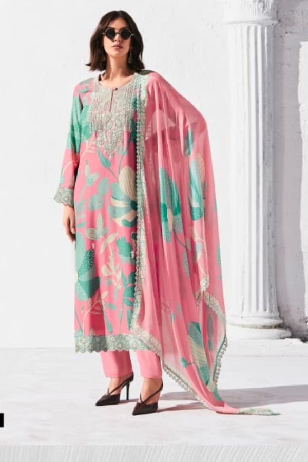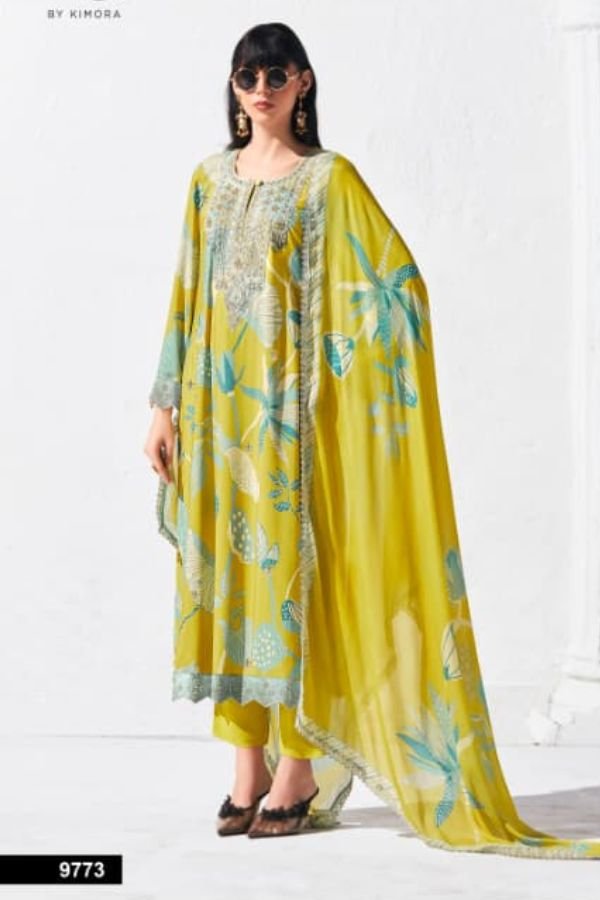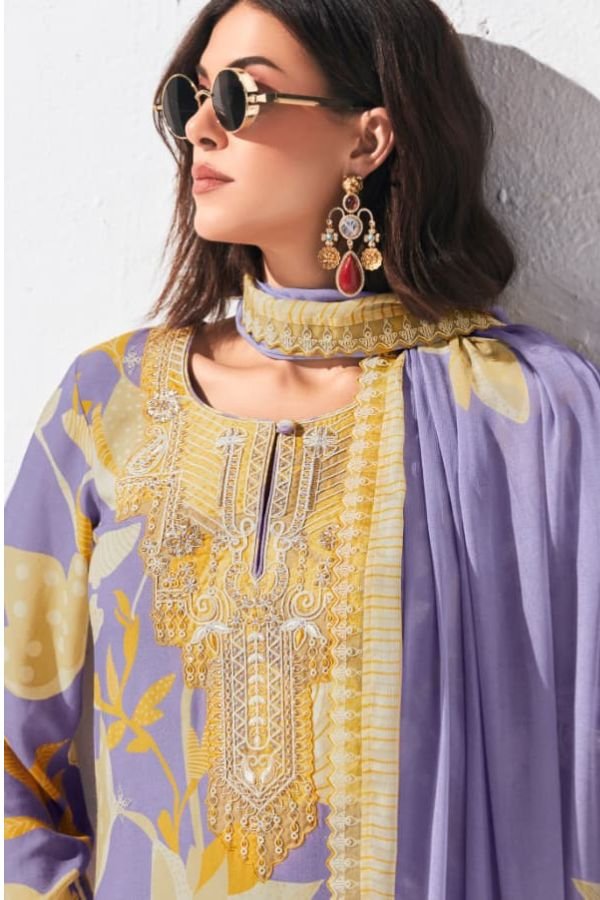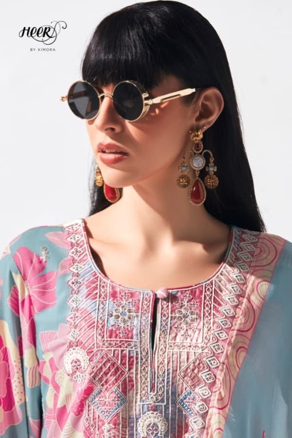 1. Introducing the exquisite Heer Attitude catalog by Kimora Fashion, a collection that epitomizes elegance and sophistication in traditional attire. This full catalog features six stunning unstitched suits, each crafted from pure muslin digital printed fabric, renowned for its lightweight and breathable qualities. The tops are adorned with dori embroidery, applique neckline, scalloped dori embroidery border hemline and sleeves, ensuring that each piece stands out with a unique charm. The digital print adds a touch of finesse, making these suits perfect for festive occasions or formal gatherin paisley, scalloped , appliqued organza patch on hemline.