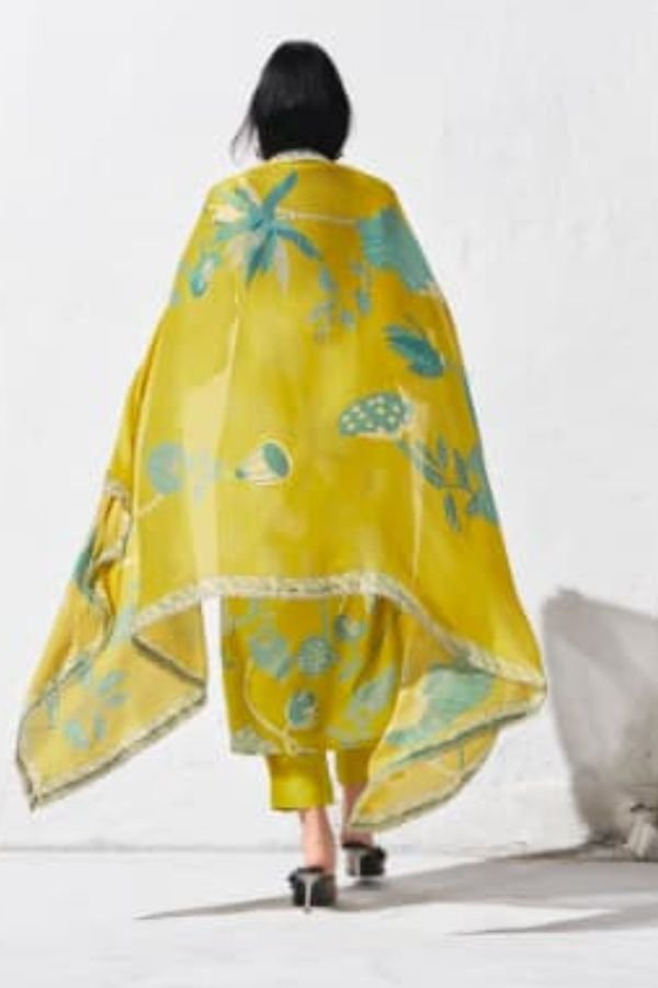 Dupatta: Pure Chinnon Digital Print and Dori Embroidery Scalloped Border