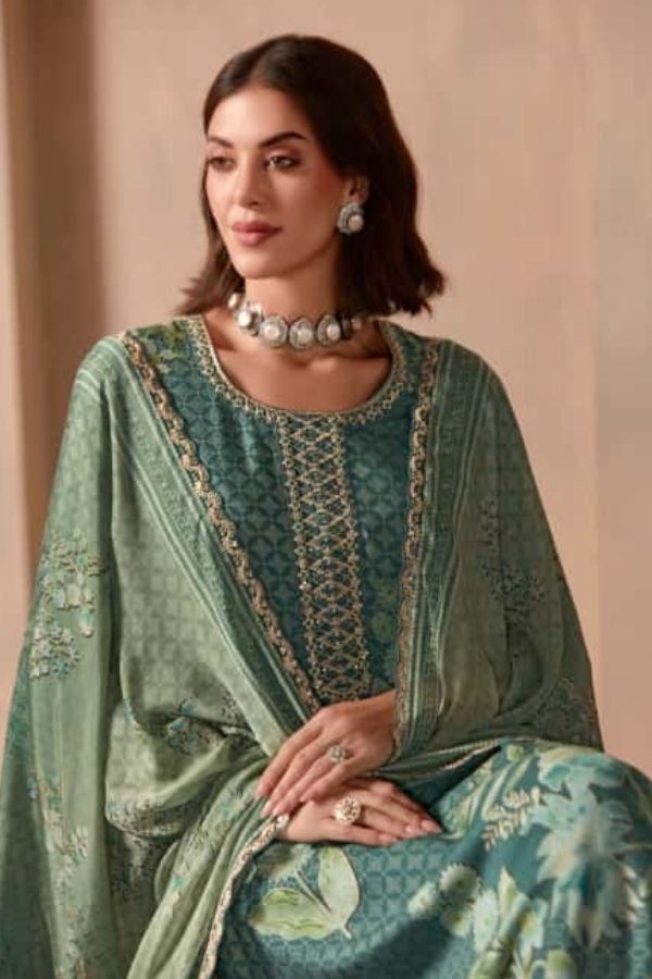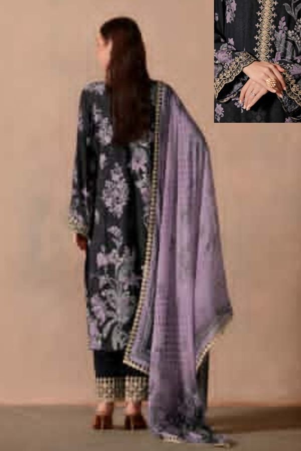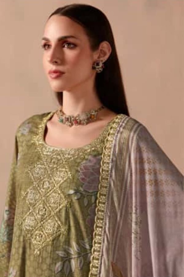 2. The bottom pieces in this collection are also made from pure pashmina with  dori patti scalloped embroidery border that harmonize beautifully with the tops. This attention to detail not only enhances the overall aesthetic but also ensures a cohesive look when paired together. The versatility of the unstitched format allows for customization, enabling you to tailor each suit to your personal style and fit preferences. Whether you prefer a classic silhouette or a more contemporary design, the Heer Classic collection provides the perfect canvas for your creativity.