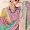1. Introducing the exquisite Heer Jugni catalog by Kimora Fashion, a collection that epitomizes elegance and sophistication in traditional attire. This full catalog features six stunning unstitched suits, each crafted from pure muslin digital printed fabric, renowned for its lightweight and breathable qualities. The tops are adorned with dori embroidery, patchwork embroidery on front, organza scalloped resham embroidery with patch work border on sleeve and hemline, ensuring that each piece stands out with a unique charm. The digital print adds a touch of finesse, making these suits perfect for festive occasions or formal gatherin paisley, scalloped , appliqued organza patch on hemline.