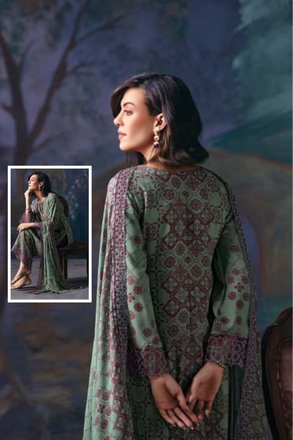 3. Completing each ensemble is a stunning dupatta crafted from pure chinnon fabric, featuring a vibrant digital print with resham scalloped embroidery border. This dupatta not only adds an extra layer of elegance but also enhances the overall appeal of the outfit. With bookings now open and free shipping available, this collection is an excellent opportunity for fashion enthusiasts to elevate their wardrobe with timeless pieces. Order through WhatsApp to secure your selection from the Kimora Fashion Heer Romance catalog and embrace the beauty of traditional craftsmanship.