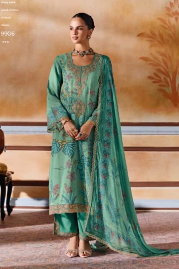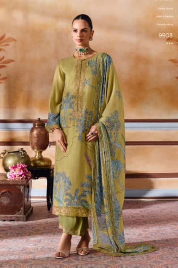 3. Completing each ensemble is a stunning dupatta crafted from pure chinnon fabric, featuring a vibrant digital print and a delicately scalloped pitta embroidery border. This dupatta not only adds an extra layer of elegance but also enhances the overall appeal of the outfit. With bookings now open and free shipping available, this collection is an excellent opportunity for fashion enthusiasts to elevate their wardrobe with timeless pieces. Order through WhatsApp to secure your selection from the Kimora Fashion Heer Shayri catalog and embrace the beauty of traditional craftsmanship.