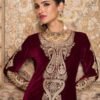 This exquisite suit features heavy embroidery on the neck, daman, and sleeves, adding a touch of sophistication and elegance to your look. The pure velvet fabric enhances the overall richness and opulence of the suit.