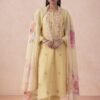 The top is made of Fine linen solid shirt with allover embroidery and handwork. This adds a touch of sophistication and uniqueness to the overall design.