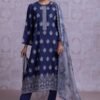 To complete the look, the set comes with fine linen zari jacquard with digital print and embroidery border dupatta, adding a graceful touch to your ensemble.