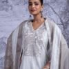The top is made of handloom cotton jacquard shirt, featuring intricate with embroidery and handwork on neck . This adds a touch of sophistication and uniqueness to the overall design.