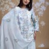 Introducing the Naariti Usho Muslin Embroidered Suit Catalog, a stunning ensemble that exudes elegance and grace.