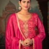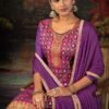 Complementing the top is a beautifully tailored bottom made from Oily Cotton, providing both comfort and style. The lightweight fabric drapes gracefully, allowing for ease of movement while maintaining a polished appearance. The ensemble is completed with a pure chinnon with swarosovski with four side banrasi border and jhumka dupatta, which adds a vibrant splash of color and enhances the overall aesthetic. This versatile piece can be styled in various ways, making it a must-have addition to your ethnic wear collection.