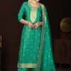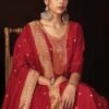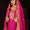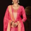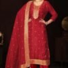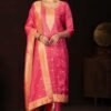 Complementing the top is a beautifully tailored bottom made from Oily Cotton, providing both comfort and style. The lightweight fabric drapes gracefully, allowing for ease of movement while maintaining a polished appearance. The ensemble is completed with a pure lakhnavi weaving with four side jhumka dupatta, which adds a vibrant splash of color and enhances the overall aesthetic. This versatile piece can be styled in various ways, making it a must-have addition to your ethnic wear collection.