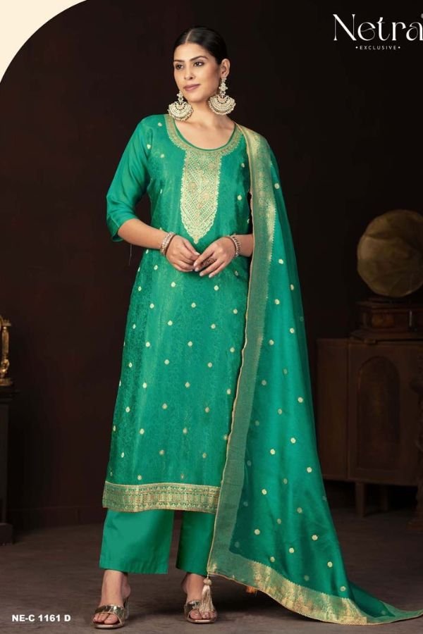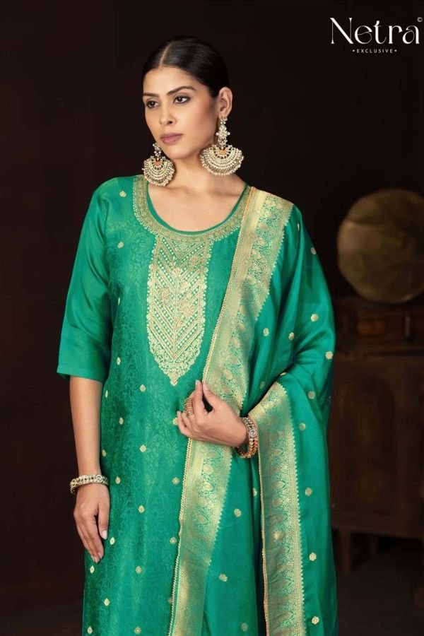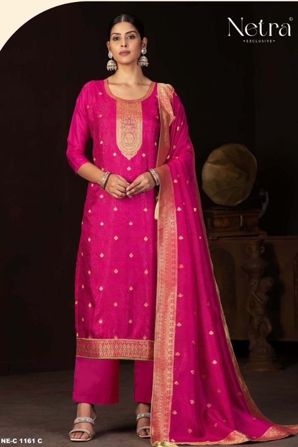 With the convenience of unstitched fabric, you have the freedom to customize the fit to your unique measurements and personal style. Bookings are now open, and with free shipping, there has never been a better time to invest in this stunning suit. Order now via WhatsApp and embrace the elegance of the Netra Exclusive Jitika collection, where tradition meets contemporary fashion.