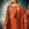 The top of each suit is fashioned from luxurious premium viscose woven silk jacquard, a fabric known for its rich texture and elegant drape. This choice of material not only elevates the overall look of the garment but also ensures a flattering fit that enhances the wearer’s silhouette. Complementing the top is a solid cotton satin bottom, which provides a perfect balance of comfort and versatility. This thoughtful combination allows the wearer to enjoy ease of movement while exuding confidence and style. The dupatta, crafted from the same premium viscose woven silk jacquard, features elegant tassels that add a playful yet sophisticated flair to the ensemble, making it a versatile accessory that can be styled in various ways.