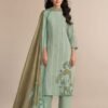 2. The bottom of the suit is crafted from premium lawn cotton, known for its softness and breathability, ensuring maximum comfort throughout the day. This fabric is not only lightweight but also durable, making it a practical choice for everyday wear. The combination of the top and bottom creates a harmonious look that is both stylish and functional. Additionally, the set includes a beautifully designed dupatta made from pine silk, featuring a vibrant digital print that enhances the overall appeal of the outfit. This versatile dupatta can be draped in multiple styles, allowing for personalization and creativity in styling.