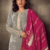 To complete the set, the dupatta is made of Banarasi Jacquard fabric and features stunning embroidery patchwork, making it a perfect accessory to complement your outfit.