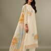 2. The bottom of the suit is crafted from premium lawn cotton, known for its softness and breathability, ensuring maximum comfort throughout the day. This fabric is not only lightweight but also durable, making it a practical choice for everyday wear. The combination of the top and bottom creates a harmonious look that is both stylish and functional. Additionally, the set includes a beautifully designed dupatta made from pine silk cotton featuring a vibrant digital print that enhances the overall appeal of the outfit. This versatile dupatta can be draped in multiple styles, allowing for personalization and creativity in styling.