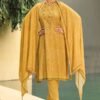 To complete the ensemble, each suit comes with a pure marino wool printed dupatta. The dupatta adds a graceful flair to the outfit and enhances its overall appeal.