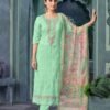1. The Relssa Fabrics Radhika Unstitched Cotton Lawn salwar suit 4pcs Catalog is a stunning ensemble that combines traditional craftsmanship with modern design. The top of the suit is made from high-quality Cotton Lawn fabric, which is known for its softness and breathability. It features intricate embroidery work and a beautiful digital print, adding a touch of elegance to the overall look. The bottom is also made from Cotton Lawn fabric, ensuring comfort and ease of movement. The dupatta, made from Chiffon fabric, features delicate embroidery and a fancy digital print, completing the ensemble with a touch of sophistication.