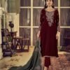 The bottom of the suit is also fashioned from pure velvet, ensuring a harmonious and cohesive look that beautifully complements the top. This unstitched set offers the unique advantage of customization, allowing you to tailor it to your personal style and fit preferences. Whether you prefer a more fitted silhouette or a relaxed drape, the choice is yours, making this suit a versatile addition to your wardrobe.