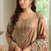 Each set includes a top, bottom, and dupatta, all crafted with the utmost care and attention to detail. The top is made of viscose pashmina and features a mesmerizing digital print, enhanced with heavy ghatt handwork on tai works and daman work for an added touch of glamour. The bottom is made of heavy viscose pashmina dyed to perfection, ensuring a perfect match with the top. The dupatta is also made of pure viscose pashmina shawl and boasts a beautiful digital print with 4 side lace and latkan that complements the overall design.