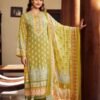 Featuring the latest designs from the Dream Valley Vol 2 catalog, this suit set is perfect for the fashion-forward woman who wants to make a statement. The top is made from high-quality Viscose Pashmina fabric, digitally printed with intricate patterns. It is further enhanced with delicate handwork, Swarovski work, and embroidery, along with a stitched patch for added charm.