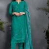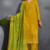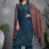 2. The top of this salwar suit is made from digital printed modal silk fabric, which is known for its softness and breathability. It is adorned with a digital print that adds a touch of vibrancy to the outfit. The top also features with knot work and finished with organza embroidery lace, enhancing its overall appeal. The unstitched design allows for customization according to your preferences and measurements, ensuring a perfect fit.