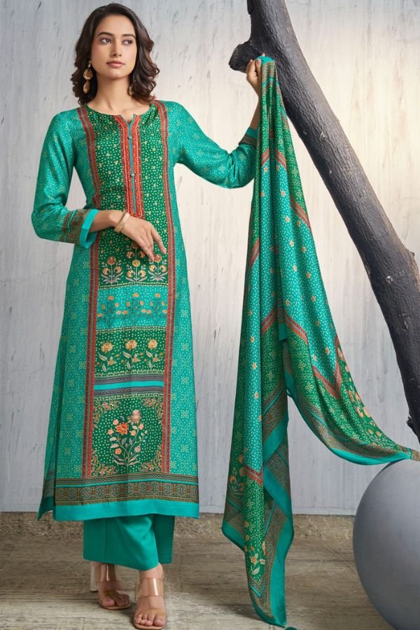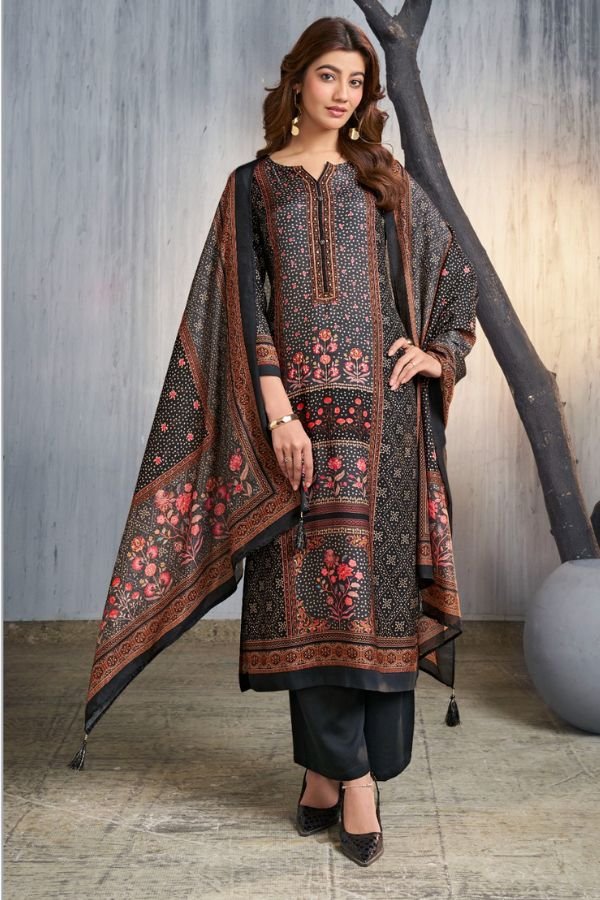1. The Sahiba Shiddat Nivara Muslin Printed Ladies Suit is a stunning ensemble that combines traditional elegance with contemporary style. This exquisite outfit is brought to you by the renowned brand Sahiba, known for its high-quality fabrics and intricate designs.