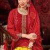 1. Discover the exquisite elegance of the Salvi Fashion Sarah Festive Vol 3 Silk Printed 6pcs Suit Unstitched Suits Catalog, a perfect addition to your reselling collection. This stunning assortment features a harmonious blend of luxurious modal silk, showcasing intricate discharge foil print with cording embroidery work on the tops. Each piece is designed to elevate your wardrobe, offering a sophisticated look that is both contemporary and timeless. The modal silk solid bottoms complement the tops beautifully, ensuring a complete ensemble that exudes grace and style.
