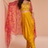 The shrug is made from pure soft organza silk, providing a delicate and ethereal look. It beautifully complements the suit, enhancing its overall appeal.