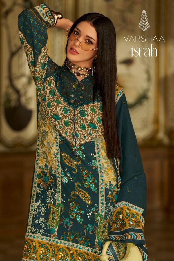 Introducing the Varsha Fashion Israh Pashmina 4Pcs Suit Winter Collection Set, a must-have addition to your wardrobe this season.