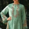 2. Complementing the beautifully designed top is a matte satin solid bottom with laces that provides a perfect balance of style and practicality. The unstitched nature of the fabric allows for customization, enabling you to tailor the outfit to your personal preferences and body type. Additionally, the collection includes a digitally printed viscose muslin chinnon dupatta with added tassels that enhances the overall aesthetic, offering a graceful drape that elevates the entire look. This thoughtful combination of fabrics and designs ensures that you will stand out with elegance and grace.