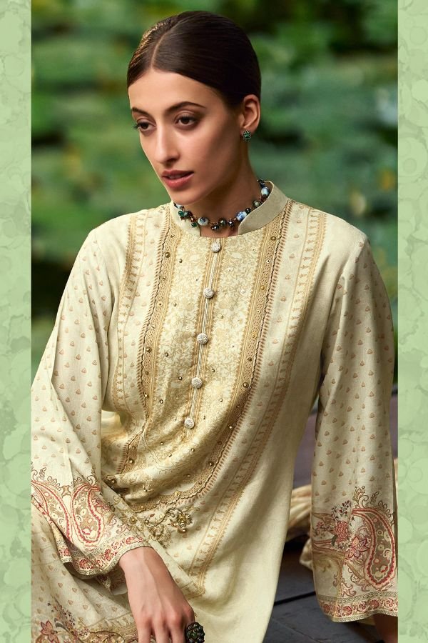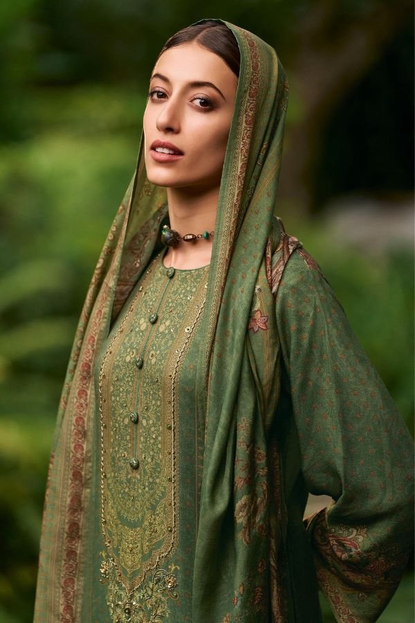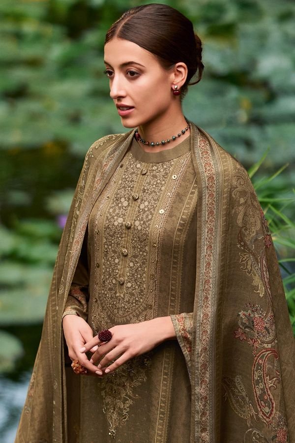 This exquisite suit set is brought to you by the renowned brand, Varsha Fashion, ensuring top-notch quality and style. From their coveted Jazba Pashmina catalogue, this set is a true masterpiece.