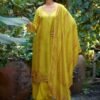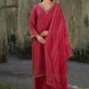 2. Complementing the beautifully designed top is a solid matte satin bottom that provides a perfect balance of style and practicality. The unstitched nature of the fabric allows for customization, enabling you to tailor the outfit to your personal preferences and body type. Additionally, the collection includes a viscose muslin chinnon digital printed dupatta with added tassels that enhances the overall aesthetic, offering a graceful drape that elevates the entire look. This thoughtful combination of fabrics and designs ensures that you will stand out with elegance and grace.