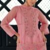 The centerpiece of this collection is the beautifully crafted top, made from super net fabric. This luxurious material not only exudes a subtle sheen but also offers a soft and comfortable feel against the skin. The top features exquisite intricate cross stitch embroidery and borders and inner that adds depth and texture. This thoughtful combination enhances the visual appeal of the garment, making it suitable for a variety of occasions—from festive celebrations to casual gatherings. The comfortable fit ensures that you can move with ease, allowing you to enjoy every moment in style.