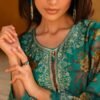 2. The collection includes a matte satin solid bottom that provides a sophisticated contrast to the vibrant top, enhancing the overall aesthetic of the ensemble. This combination not only ensures a flattering fit but also adds a touch of refinement to any wardrobe. The dupatta, made from the same viscose muslin as the top, features captivating digital prints and is adorned with charming tassels, adding a playful yet elegant flair to the outfit. This thoughtful design makes the Summer Song collection versatile, suitable for both casual outings and festive celebrations.