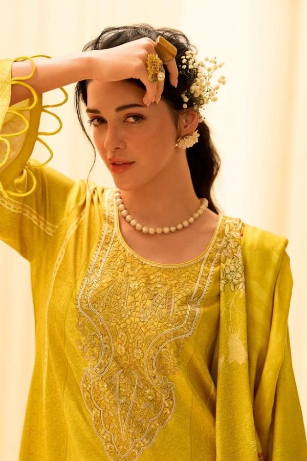 The top of this suit features a stunning Viscose pashmina digitally printed, adorned with intricate embroidery . It is a perfect blend of traditional and contemporary designs, making it a versatile choice for any occasion.