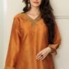 At the heart of this collection is a top crafted from luxurious Art Tussar Silk, a fabric renowned for its rich texture and lustrous finish. The top is adorned with intricate digital prints that infuse a vibrant touch into the fabric, creating a visual feast that captures attention. The embroidered neckline adds a refined detail, enhancing the overall aesthetic of the outfit and providing a touch of sophistication that is sure to impress. Each element of the design has been thoughtfully curated to ensure that the wearer stands out in any setting.