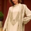 Introducing the Varsha Fashion White Gold Pashmina 4Pcs Suit Winter Collection Set, a must-have addition to your wardrobe this season.