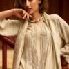 This exquisite suit set is brought to you by the renowned brand, Varsha Fashion, ensuring top-notch quality and style. From their coveted White Gold Pashmina catalogue, this set is a true masterpiece.